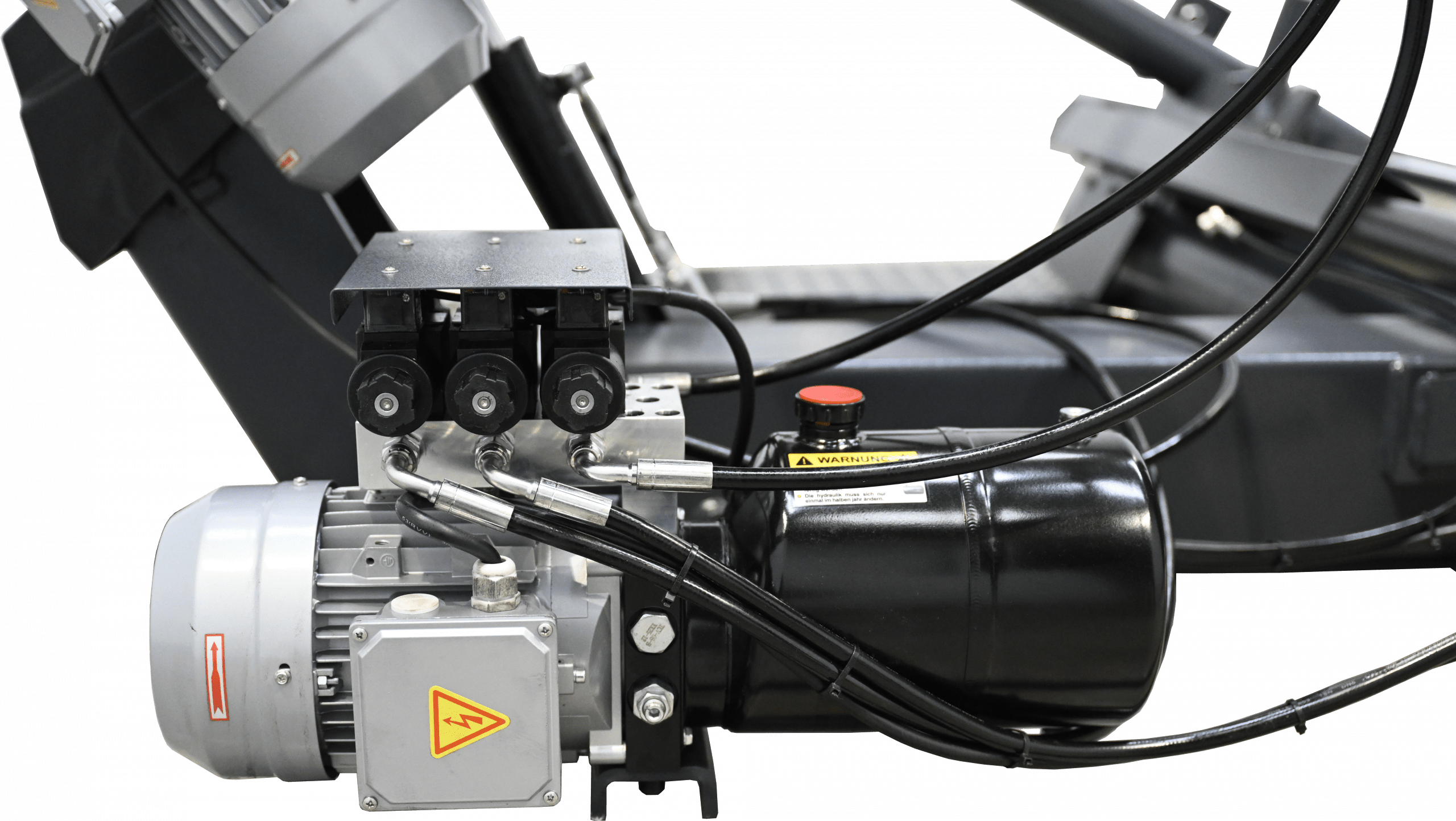 – Hydraulische Spannvorrichtung mit Begrenzungsventil (Steuerung über Kippschalter).