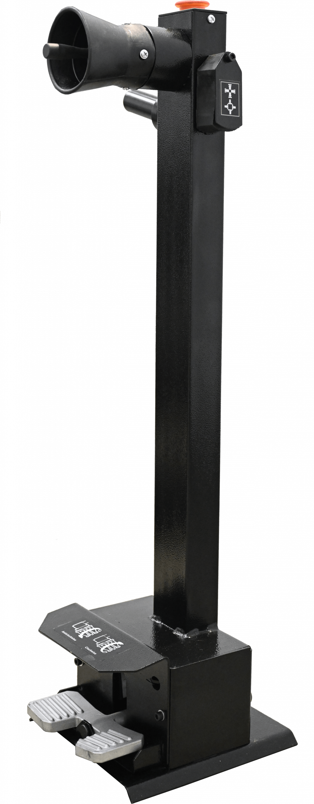 Spannvorrichtung mit Rechts- und Linkslauf, bequem steuerbar über Fußpedale.
